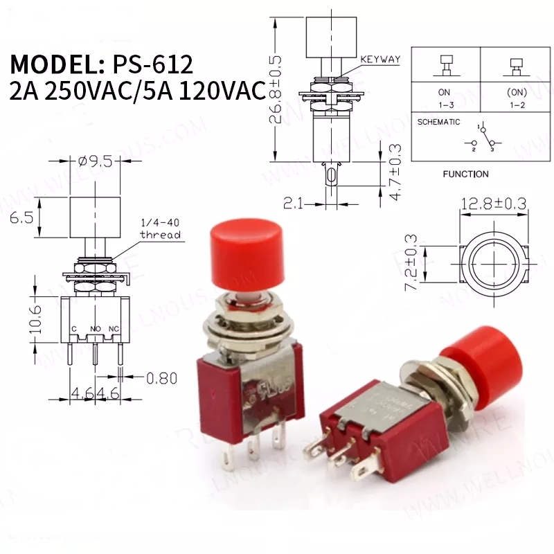 MR-139B TOGGLE SWITCH ON-OFF 3 BACAKLI BASMALI BUTON KIRMIZI KAFALI